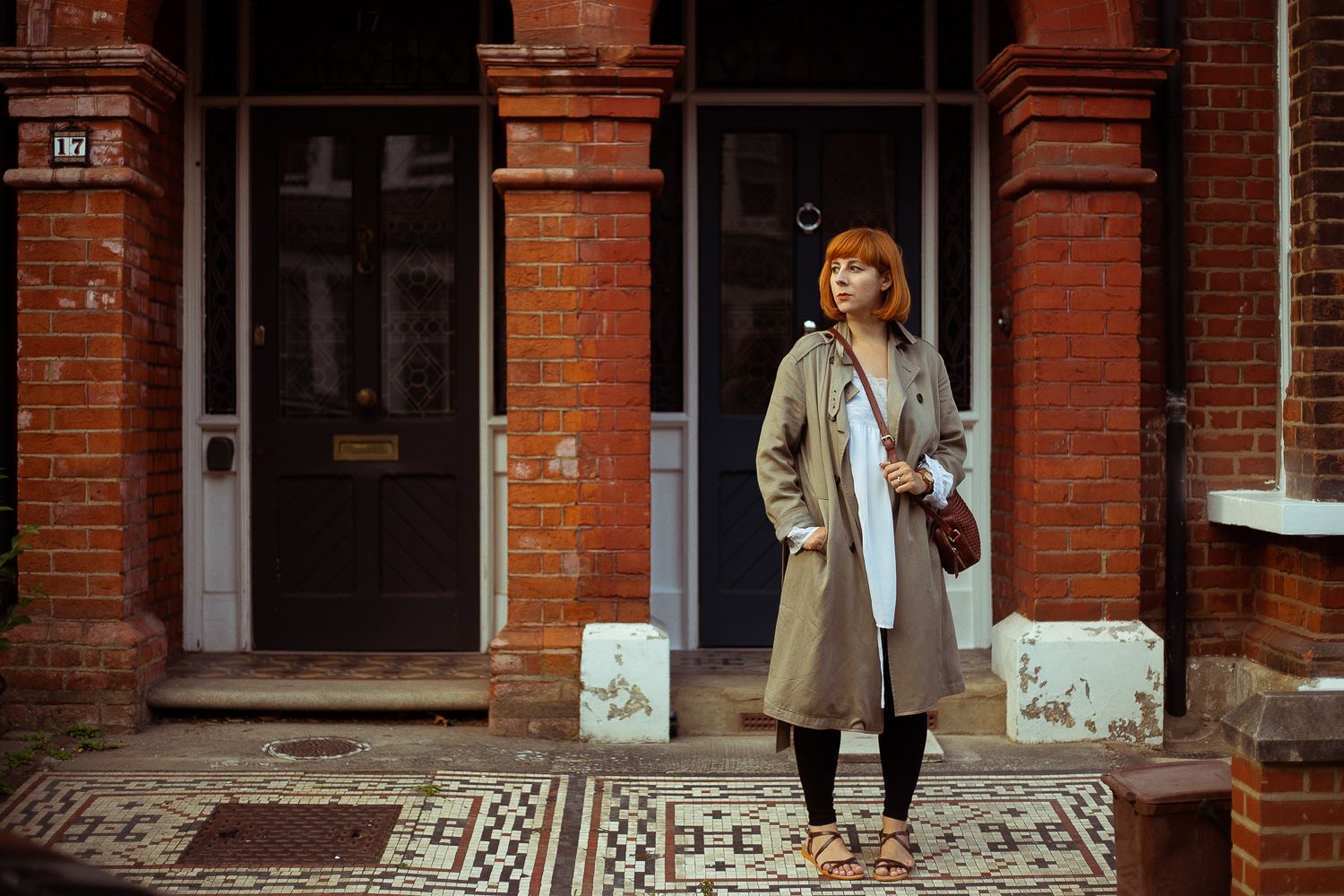| Sukienka – Internacionale | Płaszcz – All Saints | Torebka – &Other Stories | Buty – CCC | Zegarek – Fossil |